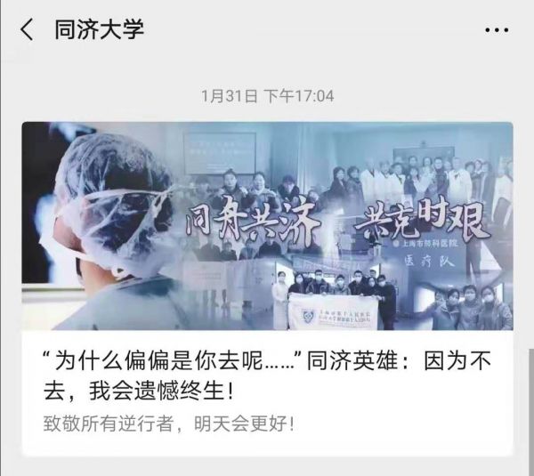 据校方介绍,短短几小时,该校有数千名学生阅读和转发助力防控疫情网文,并在留言区接力,为武汉加油,向奋战在防疫一线的工作人员致敬,为祖国祝福!