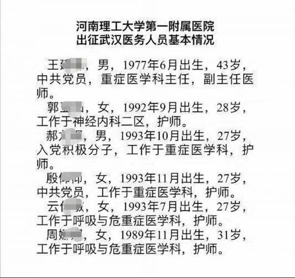 其中,河南理工大学第一附属医院派出6人,多数都是90后。