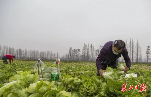 长江日报-长江网2月3日讯 2月2日清晨6点,东西湖区辛安渡街试验站大队富民合作社农民张又翻早早起床来到田间。大白菜已经长成,他把长得最好的砍下来。“把外面老一点的叶子都要剥掉,这是送给困难群众的,现在特殊情况,我们农民只会种菜,也尽可能出点力。”在他的田里,已经砍下的400多斤白菜被装进了8个大包。