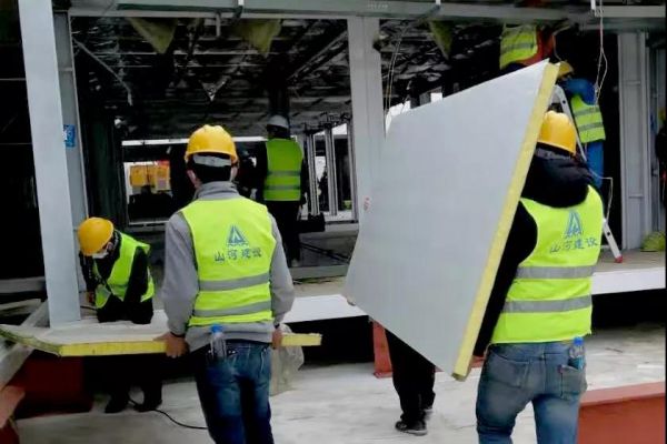 2月2日,雷神山医院建设项目指挥部发来紧急任务,需要支援安装“医疗隔离区”集装箱隔断工人。山河集团火速集结人力和物资,20余名管理人员和专业技术工人立即奔赴雷神山。