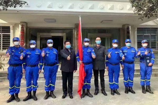 2月2日下午,谷城县委组织部、县委统战部为“谷城蓝天救援队”临时党支部授旗。席文辉、芮海波等队员心潮澎湃,铿锵有力地承诺:“志愿投身抗击疫情一线,冲锋在前,不获全胜,决不收兵!”