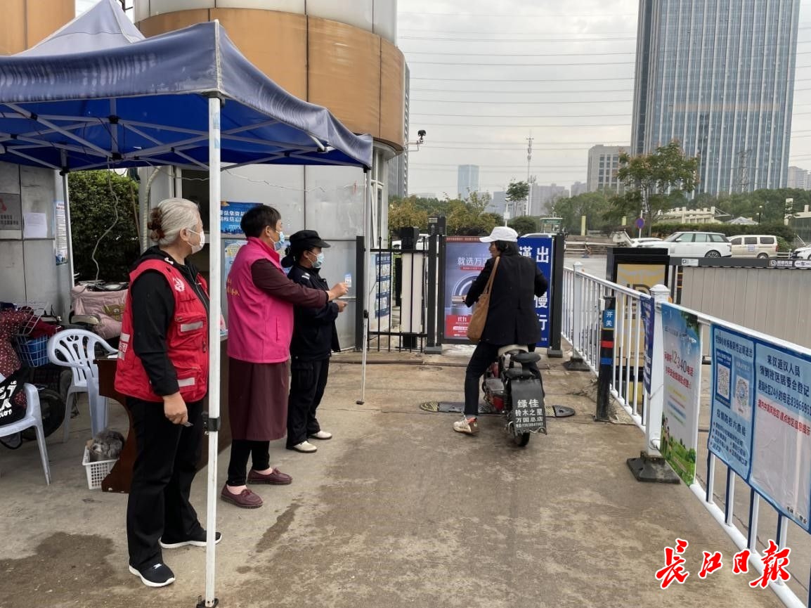 长江日报大武汉客户端11月11日讯(记者孙笑天)社区防控是一张网,方方面面都要织密筑牢。11月11日,长江日报记者在东西湖区碧海社区探访时看到,社区凝聚下沉党员、居民志愿者、小区物业多方力量,分工合作,共同守护自己的家园,织牢社区防疫“安全网”。
