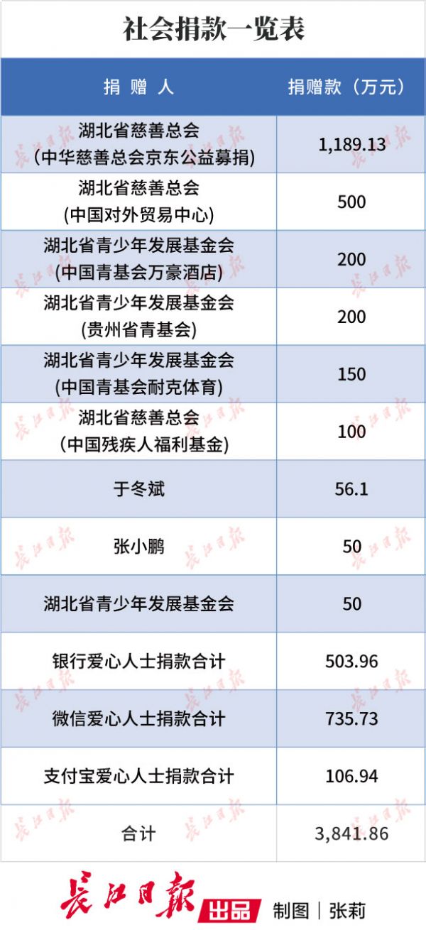具体捐赠信息可在武汉市慈善总会官网查询。