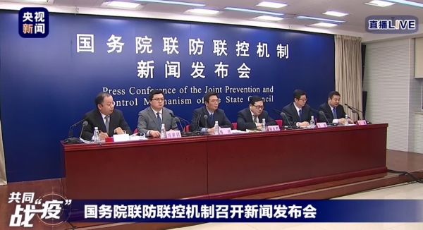 国务院联防联控机制新闻发布会现场 央视直播截屏