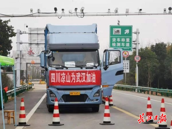 来自四川凉山的货车载着捐赠物资抵达武汉。