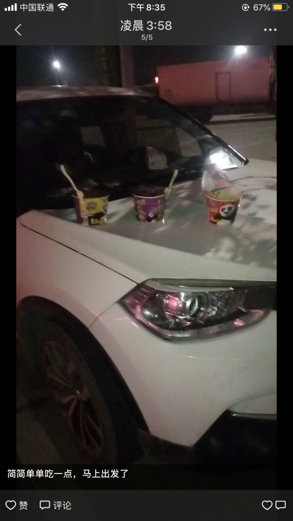 宋江波的朋友圈里,这条微信显示的发出时间是凌晨3:58。3位司机一人吃了碗方便面,又出来了。