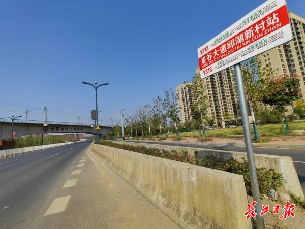 11月9日,记者再次前往现场看到,新设站点叫“星谷大道邱湖新村”站,距小区二期大门直线距离100多米,停靠的公交线路仍为Y312、Y313路。