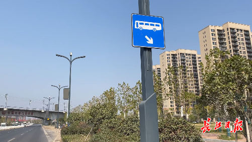 距小区不远处新增的公交通行标识很醒目。 记者尹勤兵 摄