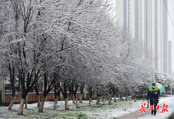 金银湖一条马路边的树枝银装素裹。记者李永刚 摄