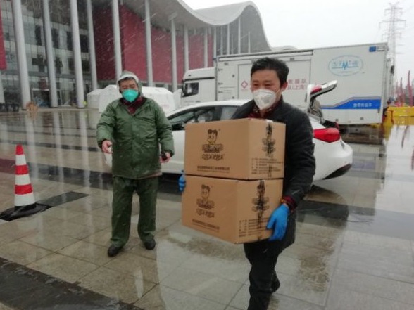 2月15日上午,在前一天送出7大箱“周黑鸭”基础上,他冒着漫天雨雪,花5050元又采购7箱周黑鸭驱车过江,送到武汉客厅的“方舱医院”。