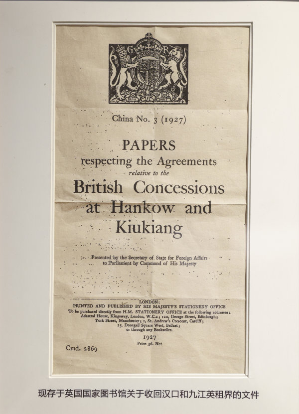 收回汉口和九江英租界的文件(复制品)。