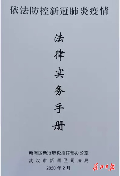 新洲区发放的 《依法防控新冠肺炎疫情法律实务手册》 通讯员揭兴旺 提供