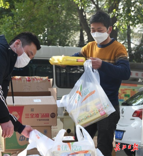 志愿者每天为小区居民跑腿,釆购、配送、分发生活物资,提供一条龙服务,受到居民们称赞。
