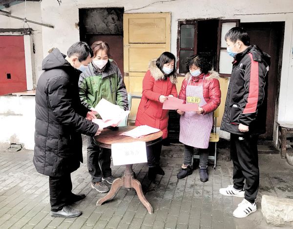 2月15日,武汉市武昌区起义门社区干部在辖区入户拉网式排查登记发热人员。 (湖北日报全媒记者 张鸿 通讯员 魏玉萍 摄)