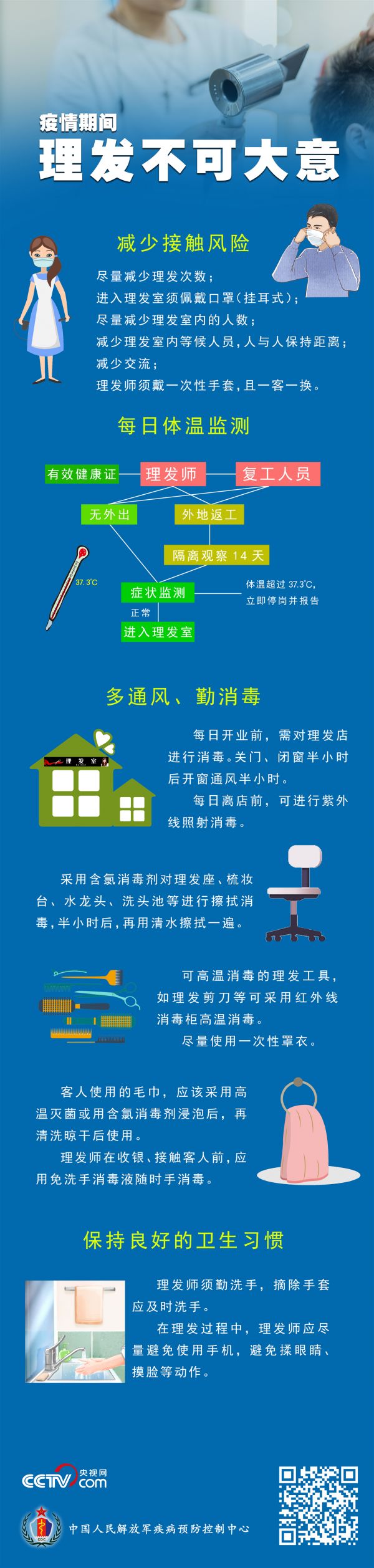 【够科普】特别想见理发师?外出理发别大意 2020-02-20 17:53 央视网 0 随着复工复产潮的到来,以及居家隔离时间的延长,人们的理发需求变得越来越迫切。为避免疫情传播风险,解放军疾病预防控制中心专家提醒您,外出理发不可大意,需要注意这几点。(央视网) 【编辑:吴蕾】