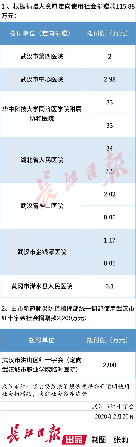 根据武汉市新冠肺炎防控指挥部第4号通告,武汉市红十字会使用社会捐赠款第十批2,315.88万元。
