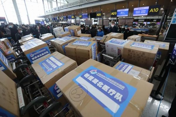 ◇ 20日,南航执行7班特殊包机,紧急运送来自广东、辽宁、黑龙江和重庆4地707名医护人员、约40.1吨医疗物资驰援湖北。