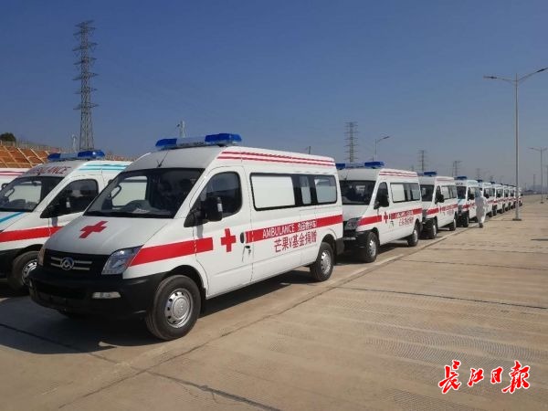 长江日报-长江网2月22日讯(记者张维纳)2月20日,中国社会福利基金会芒果V基金向武汉市捐赠的13台负压救护车全部送达疫情防控一线医院。