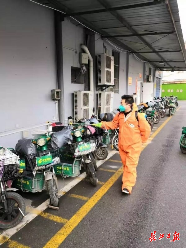 武汉市邮政分公司上海路投递站徐龙消毒作业中