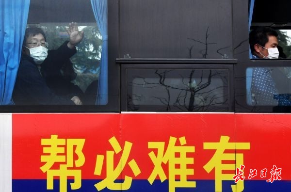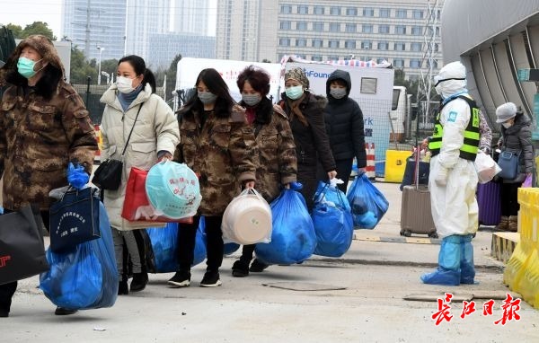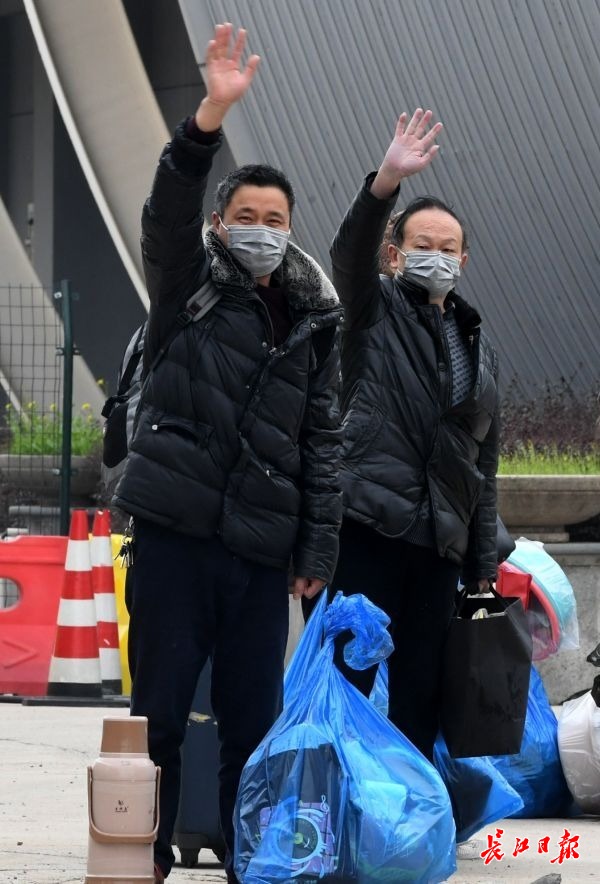 长江日报-长江网3月2日讯 “回想起这段日子,我们真的为患者战胜病毒而祈福,看到他们能够治愈出院,很高兴也很欣慰,同时,也忽然有一种难舍难分……”连日来,武汉客厅方舱医院与江夏方舱医院大批患者康复出院,大家与医护人员依依不舍挥手告别。这些患者与来自全国各地的医疗队员们建立了深厚的友情,感谢“白衣天使”在住院期间无微不至的关心与救治。(记者李子云 摄影报道)