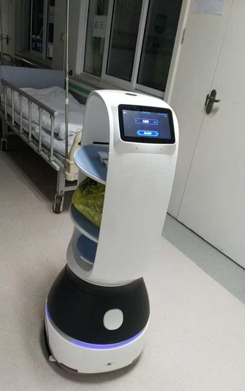 据了解,物流机器人目前主要用于送餐送药。李明介绍,一个病区近60名患者,护士送饭一次要耗费大量时间,而且从非隔离区进入隔离区中间有一个交接,非常麻烦。如今,护士可以把全部饭菜拿入病区,装上机器人,差不多每趟可以装10-15份,跑个四五次就够了,不仅节约了人力,也节省了时间,还能做到无接触配送。