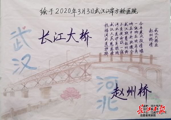 长江日报-长江网3月4日讯 当白洋淀荷花遇上武大樱花,当赵州桥遇上武汉长江大桥,当承德避暑山庄遇上黄鹤楼……3月4日上午,江岸方舱医院河北医疗队为患者精心组织了河北风情体验活动。来自河北队的护士长解明芳告诉长江日报-长江网记者,这次活动的初衷就是想舒缓病患的情绪,同时也告诉大家,此时疫情防治局面虽有好转,但一定不要急躁,坚持下去才能收获全胜。