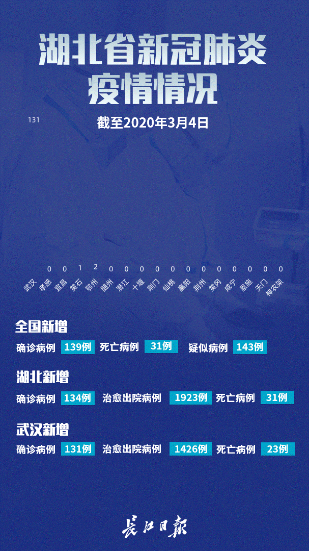长江日报-长江网3月5日讯(记者黄琪) 根据国家卫健委每日疫情通报,3月4日,武汉市新增确诊病例131例,较昨日的114例增多了17例。