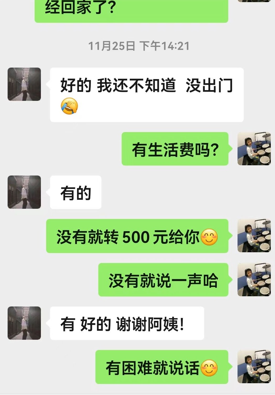 记者从李阿姨和“乐乐”的聊天记录中看到,11月25日,李阿姨还主动关心“乐乐”生活费够不够,“没有就转500元给你,有困难只管说。”