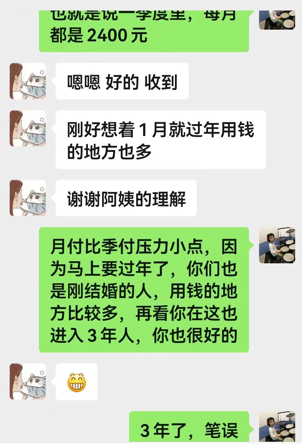 “人和人相遇都是缘分,这些其实都是小事,不值得提!”李阿姨说,她另一套房子的租客名叫“乐乐”,小伙子在附近一家酒店当厨师。前几天,到交房租的日子了,“乐乐”主动给她发微信表露难意,询问她能否允许按月支付房租。