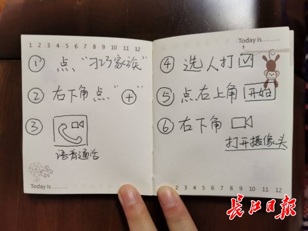 汉沙社区居民刘爷爷长期与子女分开居住。疫情发生后,其子女想与他视频通话。孩子们在电话里教了几遍,老人还是不会用微信。彭文娟接到刘爷爷的求助电话后,当即手绘了一幅视频通话的示意图送上门。简单几笔,刘爷爷直夸“一看就明白了”。前不久,刘爷爷还通过视频向他们“下过单”,志愿者马上把爱心菜送上门。