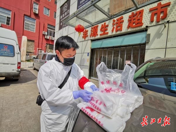 喻灿明白,在特殊时期,居民对于食材包装袋的要求不同往常。他走出社区后,直奔中百超市,但超市里的塑料袋已经销售一空。连续跑了8家商超未果,喻灿四处联系,终于通过一位朋友,买到了350个用来分装“爱心蔬菜”的专用塑料袋。