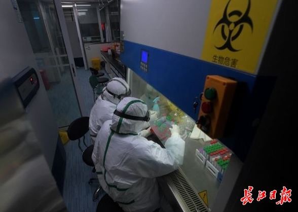 2月25日,迪安诊断武汉公司工作人员争分夺秒地进行新冠肺炎病毒核酸检测 记者史伟摄