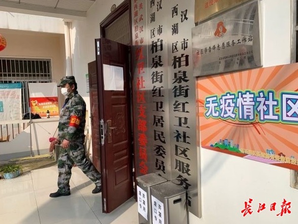 柏泉街红卫社区是东西湖区首个认定挂牌的无疫情社区,社区书记黄海涛说,社区只留一个进出通道,需要证件、工作证明以及健康码,还要测量体温,所有这些都确认后才能放行。