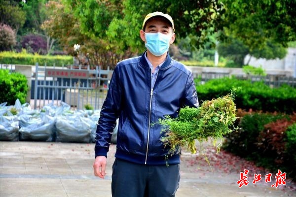 长江日报-长江网3月26日讯 26日,农历三月初三, 晋合金桥世家小区一居民为全小区2000多户购买地菜花,居民们高兴地前来领取地菜花煮鸡蛋用。