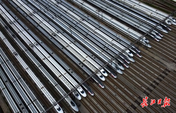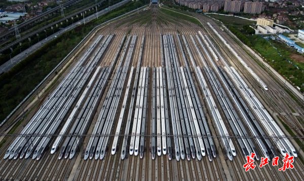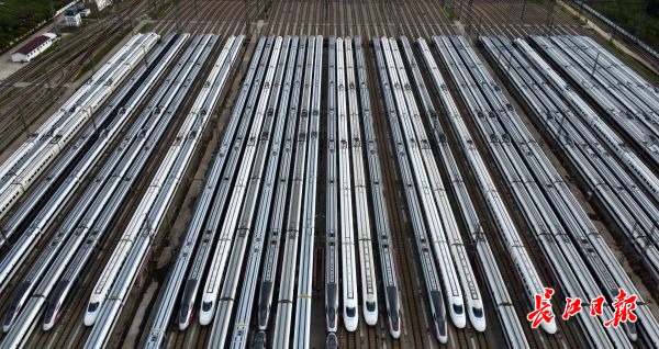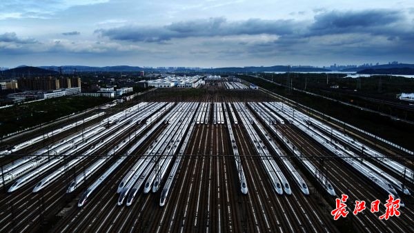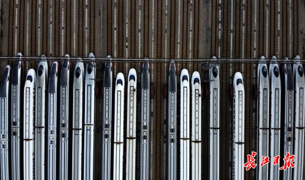 长江日报-长江网3月28日讯 28日,数百列动车组正整齐地在武汉动车段的存车线上蓄势待发,在停放了两个多月后即将迎来重新运营。从28日零时起,铁路部门恢复办理武汉市17个铁路客站到达业务;4月8日零时起,恢复办理武汉市17个铁路客站出发业务。(记者李子云 摄影报道)