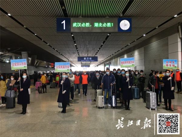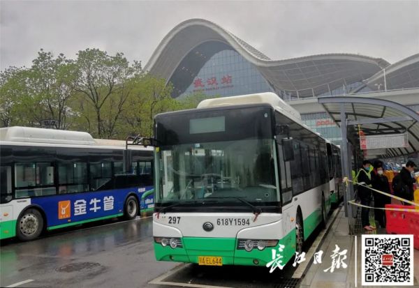 武汉火车站公交枢纽站,等待发车的公交车和候车乘客