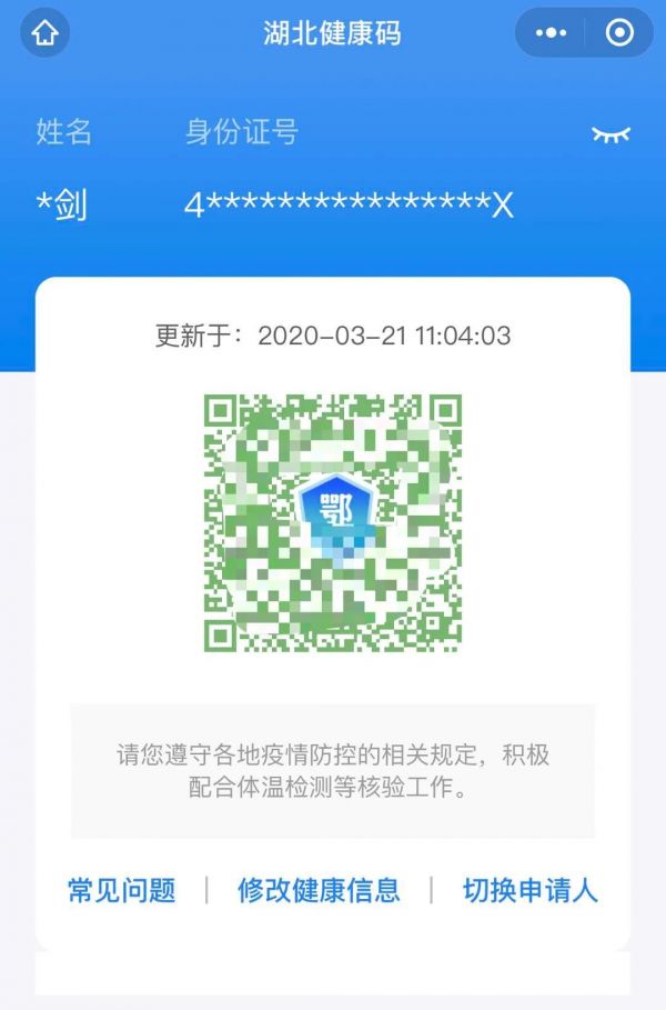 已申请湖北省健康码的乘客,可在实名登记后自动获取身份信息;未申请湖北省健康码的,可在“身份认证”完成后根据健康状态提示,进入相关页面进行健康码申请。