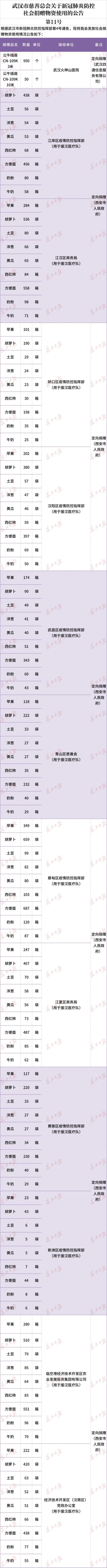 长江日报-长江网3月29日讯(记者杨帆 通讯员汪亮)根据武汉市新冠肺炎防控指挥部第4号通告,现将我会发放社会捐赠物资使用情况公告如下:后续使用社会捐赠物资情况将陆续公布。我会将依法依规依程序公开透明使用社会捐赠物资,欢迎社会各界监督。