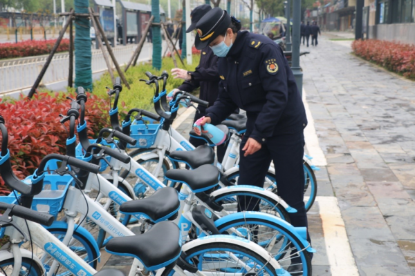 ◇ 30日上午,江夏区城管执法队员协助哈啰单车运维人员,把200辆共享单车投放于纸坊主要地铁口、公交站和商圈,解决复工人员出行“最后一公里”问题。