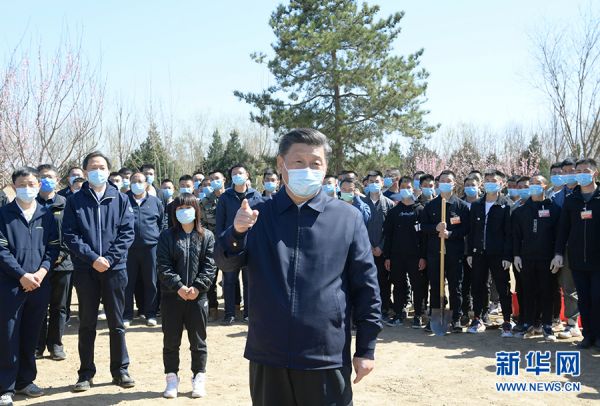 中共中央总书记、国家主席、中央军委主席习近平3日上午在参加首都义务植树活动时强调,在全国疫情防控形势持续向好、复工复产不断推进的时刻,我们一起参加义务植树,既是以实际行动促进经济社会发展和生产生活秩序加快恢复,又是倡导尊重自然、爱护自然的生态文明理念,促进人与自然和谐共生。要牢固树立绿水青山就是金山银山的理念,加强生态保护和修复,扩大城乡绿色空间,为人民群众植树造林,努力打造青山常在、绿水长流、空气常新的美丽中国。