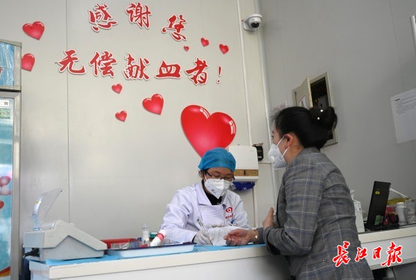长江日报-长江网4月6日讯 4月6日,武汉市王家湾献血屋,前来献血的市民有序排队等候献血。当天,该站点共采集70余份全血。(记者史伟 金思柳 通讯员张宇 摄影报道)
