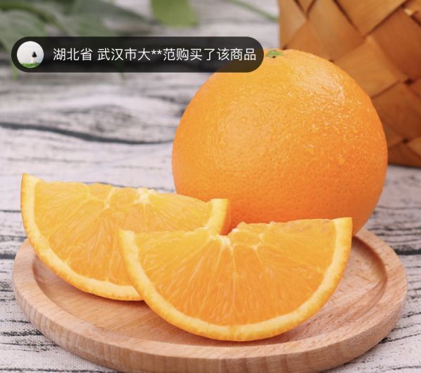另一款在长江严选上近来热销的伦晚脐橙。有收到货的网友评论,“果肉嫩、味道甜,一口下去,满是春天的味道”。