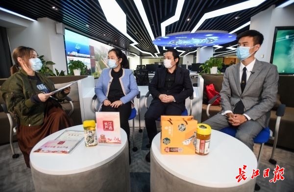 长江严选3位社区公益团长代表,在长江日报直播间讲述保供故事 记者 许魏巍 摄