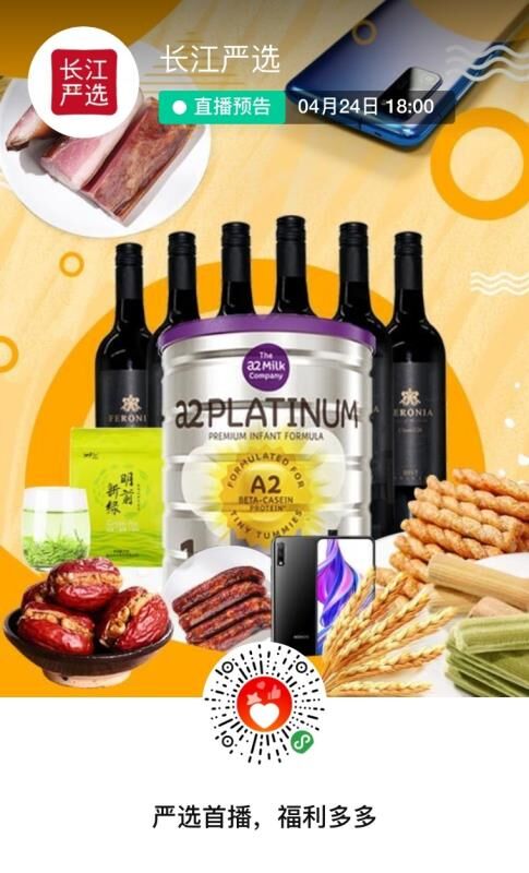 4月24日晚上18:00-20:00,长江严选首场直播“优惠福利不停”将登陆长江严选有赞商城“爱逛直播”平台。