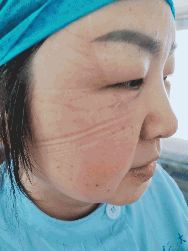 因长时间穿着防护服不透气