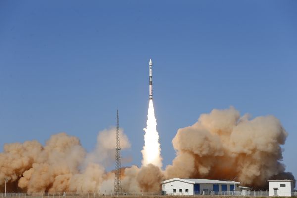 5月12日9时16分,我国在酒泉卫星发射中心用快舟一号甲运载火箭,以“一箭双星”方式成功将行云二号01/02星发射升空,卫星进入预定轨道,发射取得圆满成功。新华社发(单彪 摄)