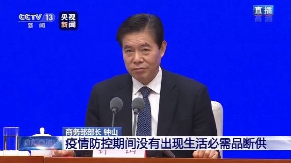 商务部部长钟山:保障全国生活必需品的供应,这是事关民生,也事关打赢防疫防控阻击战,这项任务非常艰巨。疫情期间,我国市场的供应总体来说是充足的,基本没有出现断供、脱销,价格基本上是稳定的。我们在党中央的领导下,主要做了三项工作。