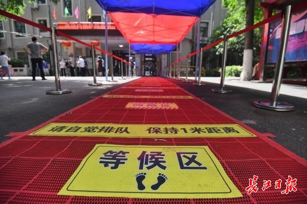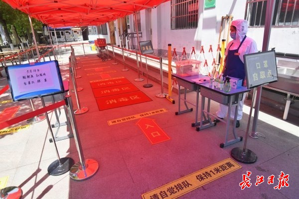 18日,武汉市第六初级中学,间隔入校缓冲区 记者 苗剑 摄