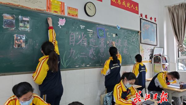 早上7点半,武汉市南湖中学的学生们办起了励志黑板报。