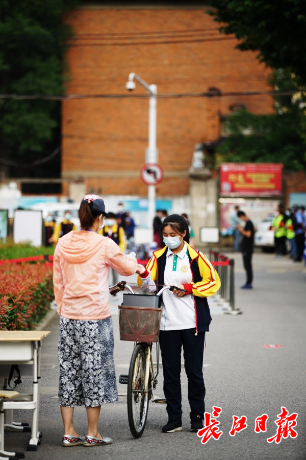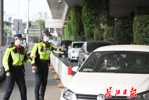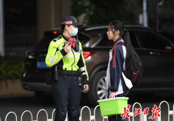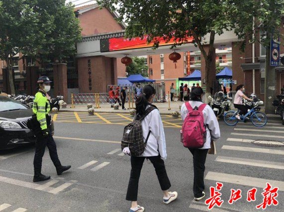 李轶作为华中科技大学附属中学毕业的学生,以交警的身份回到熟悉的校门口,为学弟学妹们保驾护航。